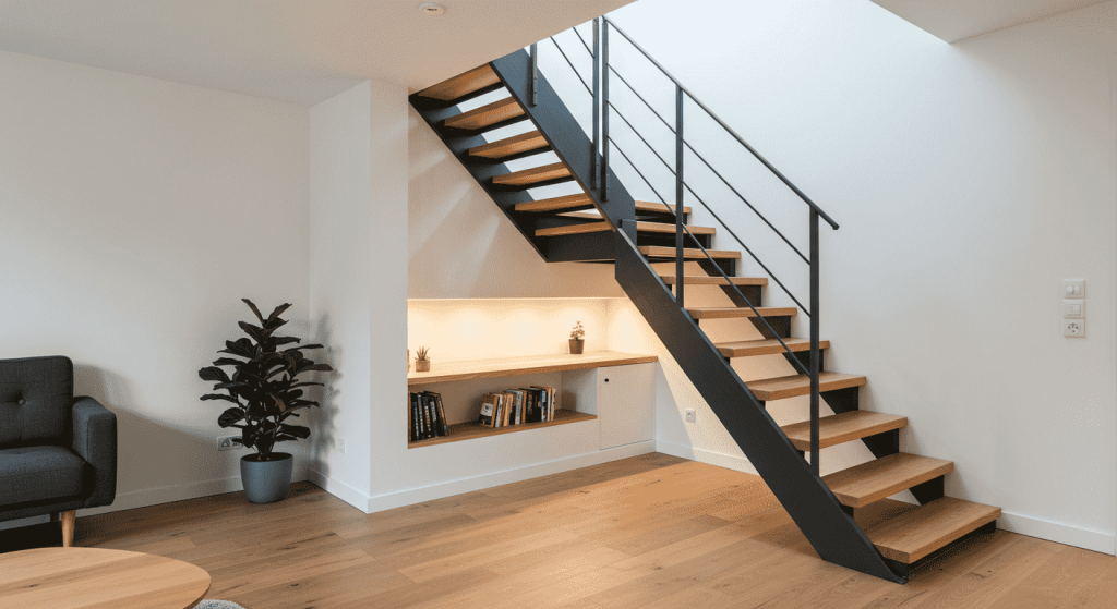 • En Yüksek Ferahlık: Mekânda en az görsel ağırlığı yaratır. Altı tamamen açık kalır, bu da merdiven altı alanın farklı dekoratif amaçlar için kullanılmasına olanak tanır.