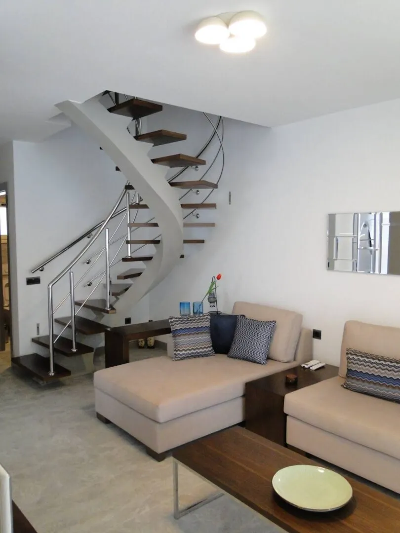 Tek omurgalı merdivenler, açık ve ferah bir görünüm sunar. Basit yapısıyla mekânda gereksiz karmaşayı önler ve modern bir dokunuş sağlar.